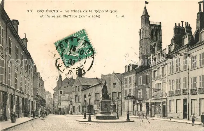 Orleans_Loiret La Place de la Republique ancien Beffroi Orleans_Loiret postalisch gelaufen 1908 Erhaltung siehe scans [KathaD81] Kathoren