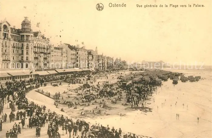 Ostende_Oostende vue générale de la Plage vers le Palace postalisch gelaufen 1916 Feldpostexpedition (Stempel) Erhaltung siehe scans [FriedD77] Feldpostexpedition (Stempel) Frierer