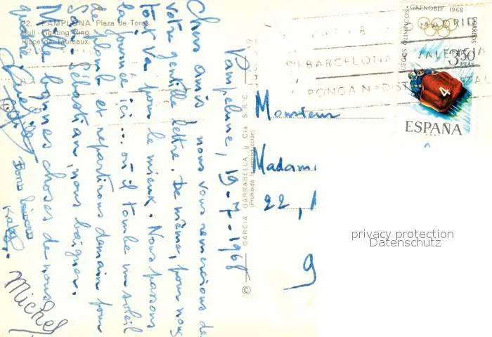 Pamplona_Navarra Plaza de Toros Pamplona Navarra postalisch gelaufen 1968 Erhaltung siehe scans [WerneD78] WernPID7