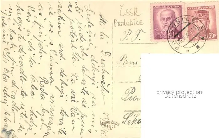 Pardubice_Pardubitz_CZ Haus-Aussenansicht postalisch gelaufen 1948 Erhaltung siehe scans [LiesaD40] LiesID40