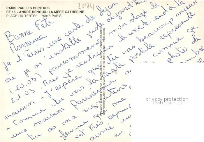 Paris Place du Tertre Paris postalisch nicht gelaufen nach 1965 Erhaltung siehe scans [KathaD81] Kathoren