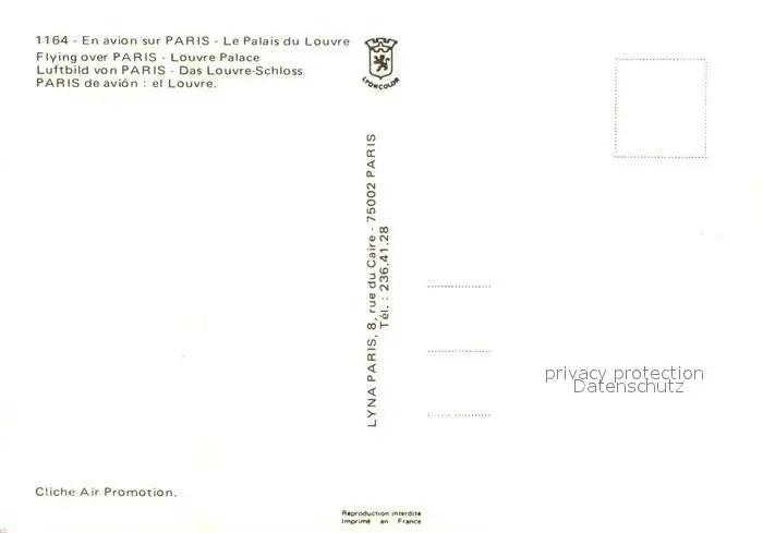 Paris Vue Aerienne Palais du Louvre Paris postalisch nicht gelaufen nach 1965 Erhaltung siehe scans [PaolaD17] PaolPID1
