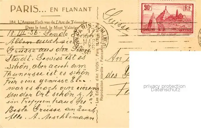 Paris_75 Avenue Foch vue de l’Arc de Triomphe Le Mont Valerien postalisch gelaufen 1936 Erhaltung siehe scans [WerneD78] WernPID7