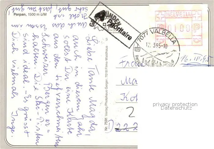 Parpaner_Rothorn Parpaner Rothorn postalisch gelaufen 1995 Erhaltung siehe scans [LiesaD40] LiesID40