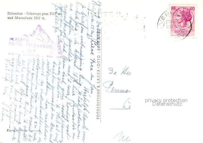 Passo_Falzarego e la Marmolada Dolomiti Passo Falzarego postalisch gelaufen 1921-1965 Erhaltung siehe scans [FriedD77] Frierer