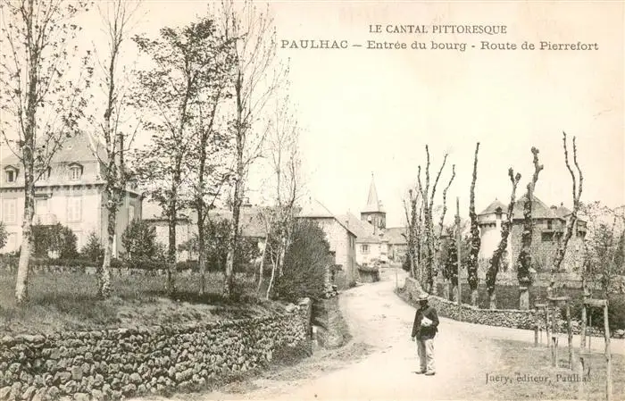 Paulhac_Cantal_Auvergne Entree du bourg Route de Pierrefont postalisch nicht gelaufen bis 1920 Erhaltung siehe scans [WerneD78] WernPID7