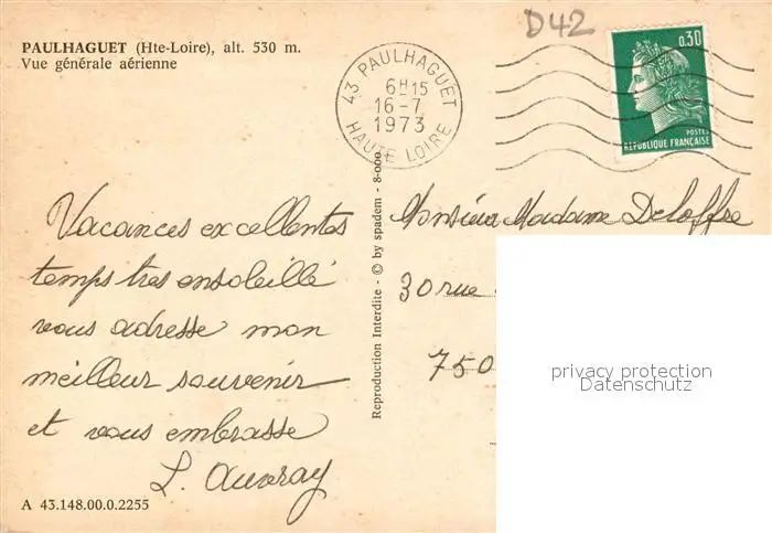 Paulhaguet Vue aérienne Paulhaguet postalisch gelaufen 1973 Erhaltung siehe scans [FriedD77] Frierer