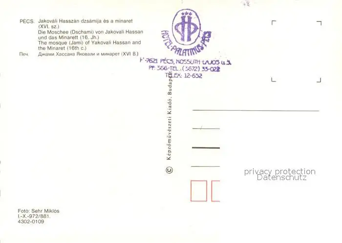 Pecs Moschee Jakovali Hassan Minarett Pecs postalisch nicht gelaufen nach 1965 Erhaltung siehe scans [FriedD77] Frierer
