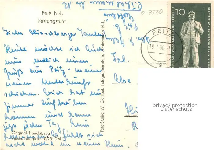 Peitz Festungsturm Peitz postalisch gelaufen 1960 Erhaltung siehe scans [KathaD81] Kathoren