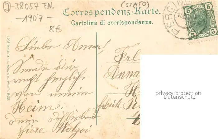 Pergine Panorama Pergine postalisch gelaufen 1907 Erhaltung siehe scans [WerneD78] WernPID7