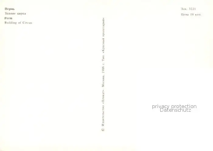 Perm Building of Circus Perm postalisch nicht gelaufen 1988 Erhaltung siehe scans [FriedD77] Frierer