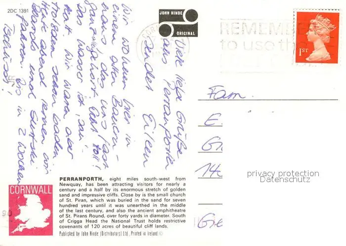 Perranporth Panorama Town and Beach postalisch gelaufen nach 1965 Erhaltung siehe scans [FriedD77] Frierer
