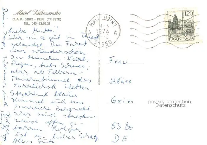 Pese Motel Valrosandra Pese postalisch gelaufen 1974 Erhaltung siehe scans [FriedD77] Frierer