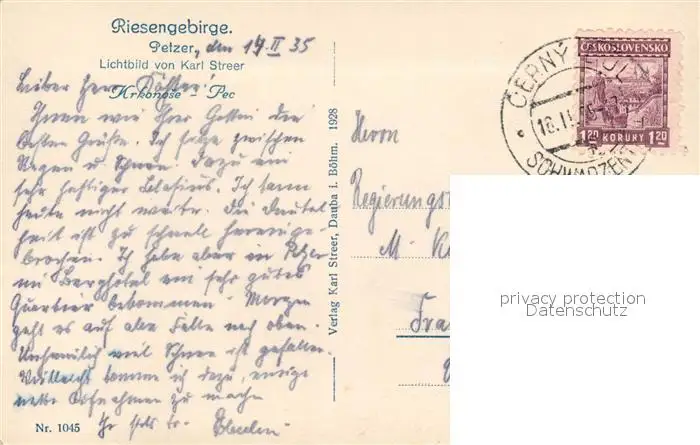 Petzer_Tschechien Winterlandschaft Petzer Tschechien postalisch gelaufen 1935 Erhaltung siehe scans [KathaD81] Kathoren