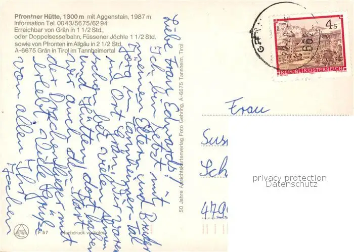 Pfronten Pfrontner Huette mit Aggenstein Pfronten postalisch gelaufen nach 1965 Erhaltung siehe scans [WerneD78] WernPID7