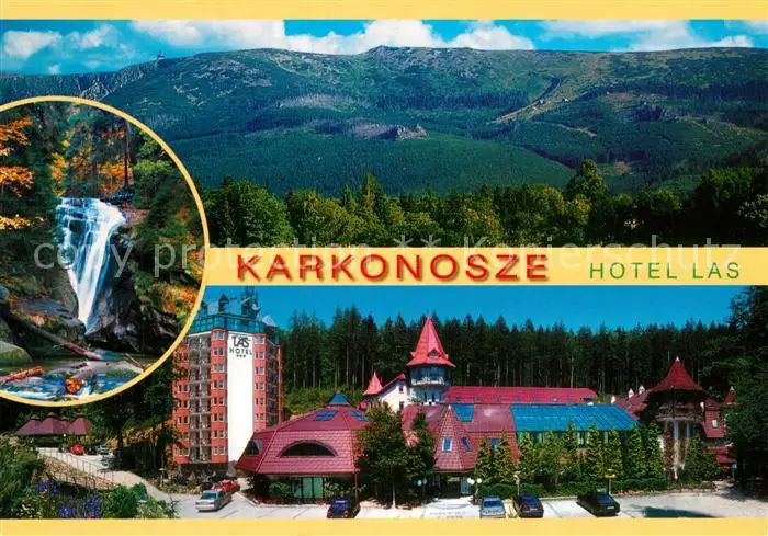 AK / Ansichtskarte Piechowice_Petersdorf Hotel Las Wasserfall Landschaftspanorama Riesengebirge Piechowice Petersdorf