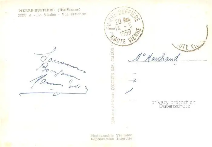 Pierre-Buffiere Viaduc Pierre-Buffiere postalisch gelaufen 1959 Erhaltung siehe scans [KathaD81] Kathoren