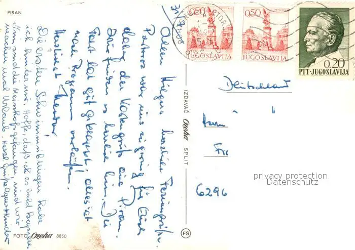 Piran Fliegeraufnahme Piran postalisch gelaufen nach 1965 Erhaltung siehe scans [WerneD78] WernPID7