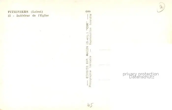 Pithiviers_Loiret Intérieur de l'Eglise Pithiviers Loiret postalisch nicht gelaufen 1921-1965 Erhaltung siehe scans [FriedD77] Frierer