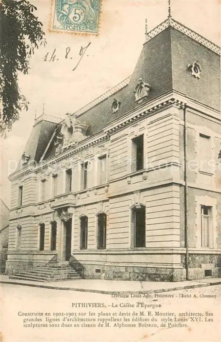 Pithiviers_Loiret La Caisse d Epargne Pithiviers Loiret postalisch gelaufen 1907 Erhaltung siehe scans [LiesaD40] LiesID40