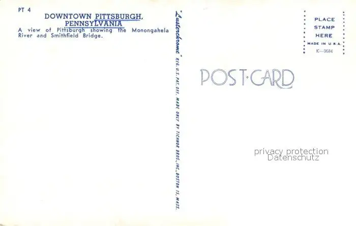Pittsburgh Downtown Monongahela River and Smithfield Bridge Pittsburgh postalisch nicht gelaufen nach 1965 Erhaltung siehe scans [FriedD77] Frierer