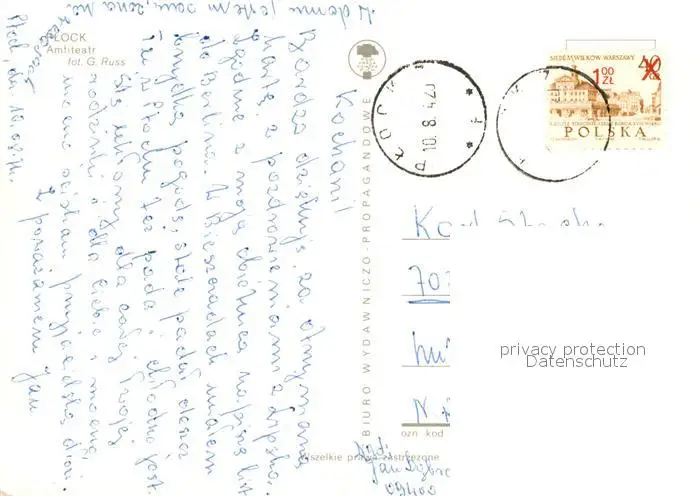 Plock Amfiteatr Amphitheater Weichsel Plock postalisch gelaufen 1974 Erhaltung siehe scans [FriedD77] Frierer