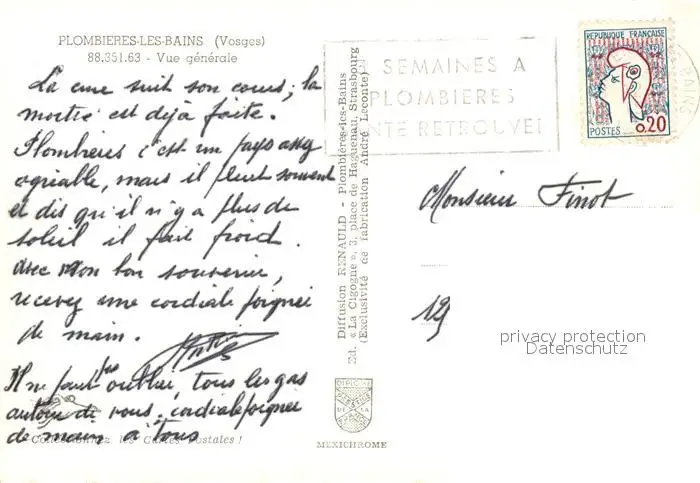 Plombieres-les-Bains_Vosges Vue générale Plombieres-les-Bains postalisch gelaufen ca. 1961 Erhaltung siehe scans [FriedD77] Frierer