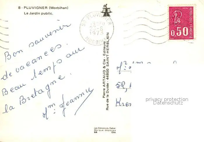Pluvigner Le Jardin public Pluvigner postalisch gelaufen 1973 Erhaltung siehe scans [WerneD78] WernPID7