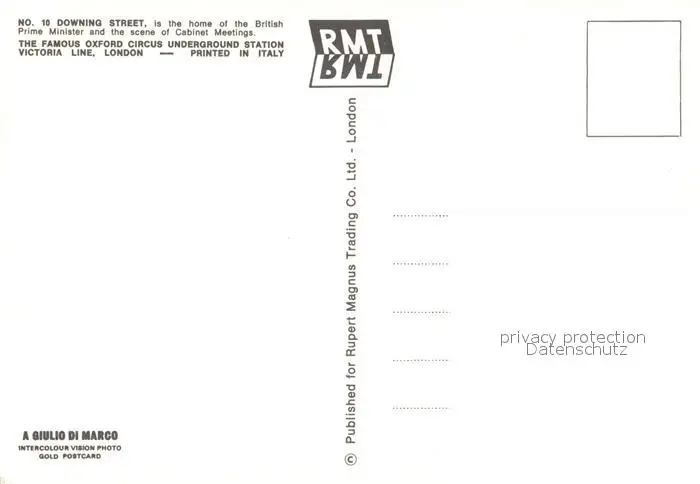 Polizei Downing Street U-Bahn Oxford Circus Underground Station Victoria Line London postalisch nicht gelaufen nach 1965 Erhaltung siehe scans [PaolaD17] PaolPID1