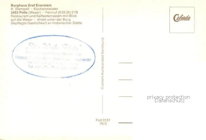 Polle Burghaus Graf Everstein Restaurant Polle postalisch nicht gelaufen 1978 Erhaltung siehe scans [FriedD77] Frierer