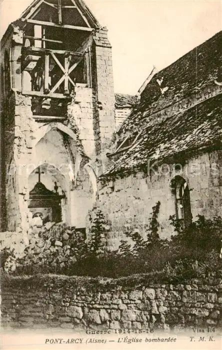 AK / Ansichtskarte Pont Arcy_02_Aisne Eglise bombardee
