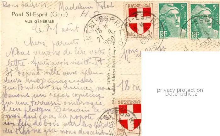 Pont-Saint-Esprit Flusspartie Pont-Saint-Esprit postalisch gelaufen 1950 Erhaltung siehe scans [LiesaD40] LiesID40