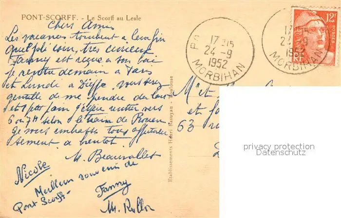Pont-Scorff Le Scorff au Lesle Pont-Scorff postalisch gelaufen 1952 Erhaltung siehe scans [WerneD78] WernPID7