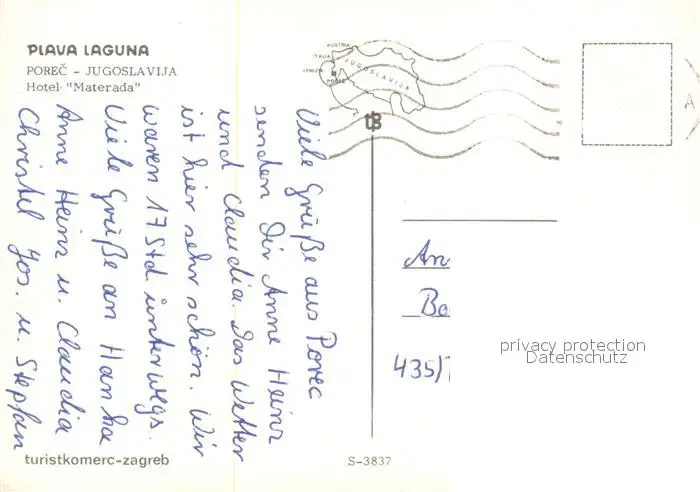 Porec Hotel Materada Ansicht vom Meer aus Porec postalisch gelaufen nach 1965 Erhaltung siehe scans [FriedD77] Frierer