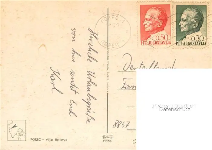 Porec Villas Bellevue Meerblick Porec postalisch gelaufen nach 1965 Erhaltung siehe scans [FriedD77] Frierer