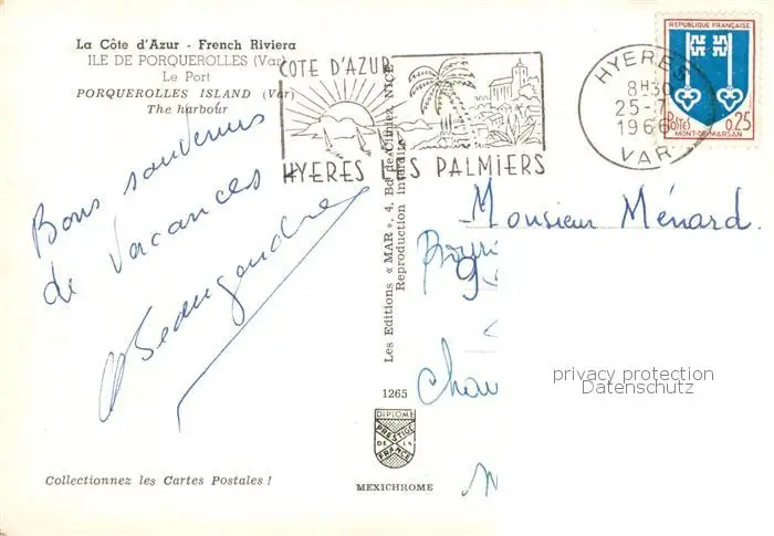 Porquerolles Le Port Porquerolles postalisch gelaufen 1966 Erhaltung siehe scans [WerneD78] WernPID7