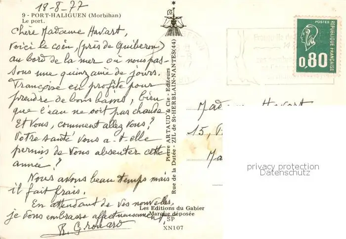 Port-Haliguen_56_Morbihan Le port postalisch gelaufen 1977 Erhaltung siehe scans [WerneD78] WernPID7