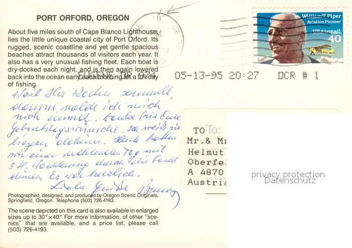 Port_Orford Aerial view postalisch gelaufen 1995 Erhaltung siehe scans [FriedD77] Frierer
