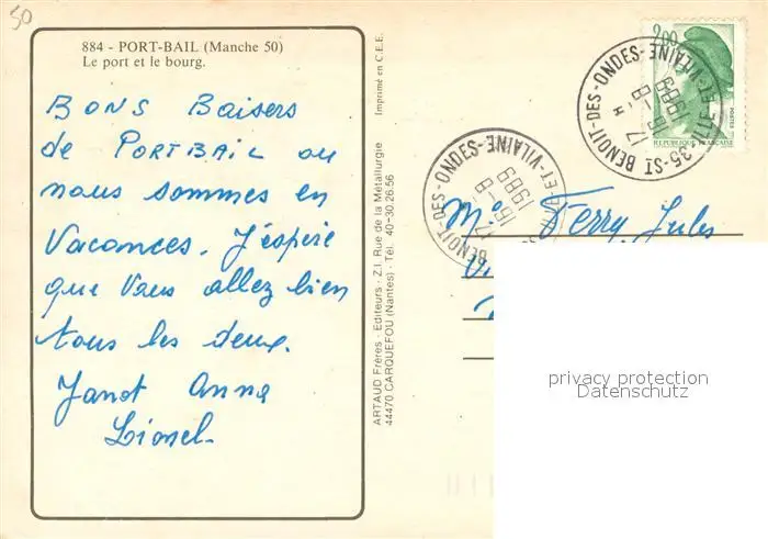 Portbail Le port et le bourg vue aérienne Portbail postalisch gelaufen 1989 Erhaltung siehe scans [FriedD77] Frierer