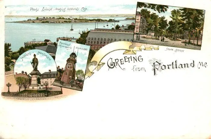 Portland_Maine Kategorie Alte Ansichtskarten Postkarten bx75892 Portland_Maine Soldiers Monument Portland Observatory postalisch nicht gelaufen Erhaltung siehe scans [KathaD81]