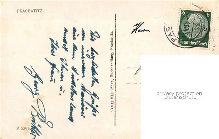 Prachatitz_Prachatice Panorama Prachatitz Prachatice postalisch gelaufen 1938 Erhaltung siehe scans [FriedD77] Frierer