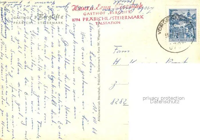 Praebichl Gasthof Berglift Praebichl postalisch gelaufen 1968 Erhaltung siehe scans [PaolaD17] PaolPID1