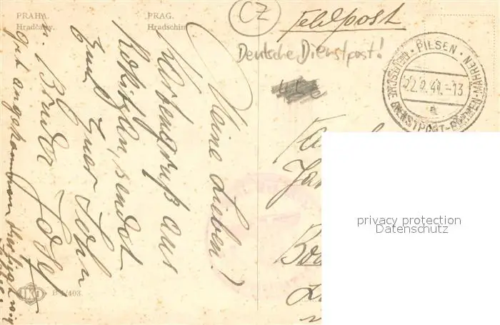 Prag__Prahy_Prague Hradschin postalisch gelaufen 1944 Feldpost - Stempel Erhaltung siehe scans [WerneD78] Feldpost - Stempel WernPID7