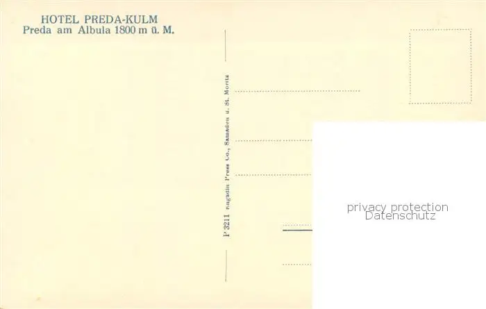 Preda_GR Hotel Preda Kulm postalisch nicht gelaufen 1921-1965 Erhaltung siehe scans [FriedD77] Frierer