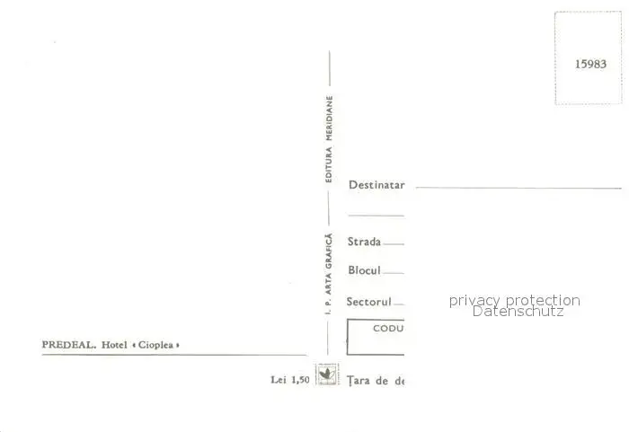 Predeal_Romania Hotel Cioplea postalisch nicht gelaufen nach 1965 Erhaltung siehe scans [FriedD77] Frierer
