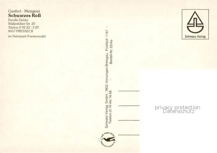 Presseck Gasthof Schwarzes Ross Restaurant Presseck postalisch nicht gelaufen nach 1965 Erhaltung siehe scans [FriedD77] Frierer