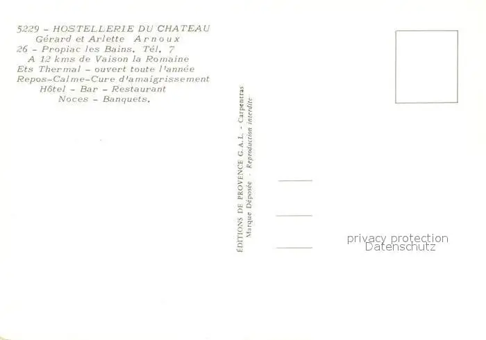 Propiac Hostellerie du Chateau Propiac postalisch nicht gelaufen nach 1965 Erhaltung siehe scans [KathaD81] Kathoren