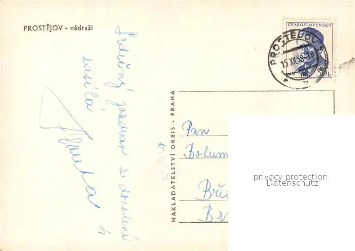Prostejov Nadrazi Prostejov postalisch gelaufen 1958 Erhaltung siehe scans [PaolaD17] PaolPID1
