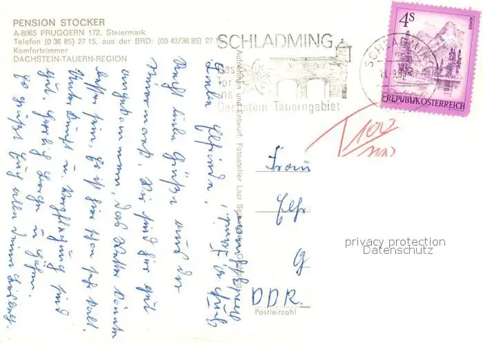 Pruggern Pension Stocker Pruggern postalisch gelaufen nach 1965 Erhaltung siehe scans [PaolaD17] PaolPID1