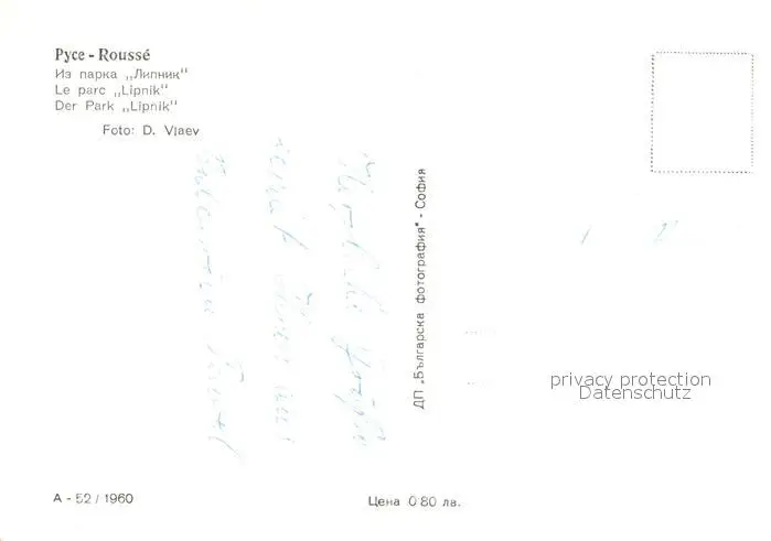 Pyce_Russe_Rousse Parc Lipnik Pyce_Russe_Rousse postalisch nicht gelaufen 1960 Erhaltung siehe scans [FriedD77] Frierer